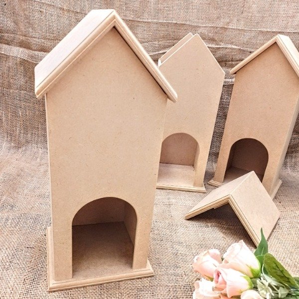 Casita porta bolsas realizada en fibrofácil.